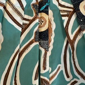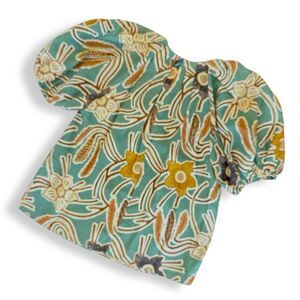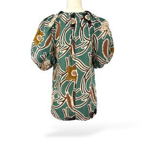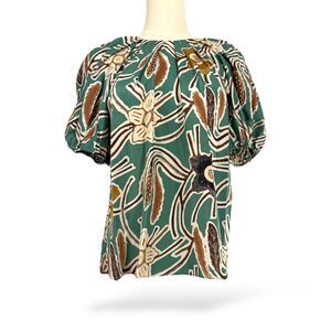 Ulla Johnson Jamilah Puff Short Sleeve Silk Blouse Topaz-Navy-Tan Sz 2 EUC
