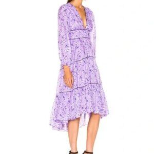 Ulla Johnson Joan Purple Floral Tiered Midi Dress Size 2