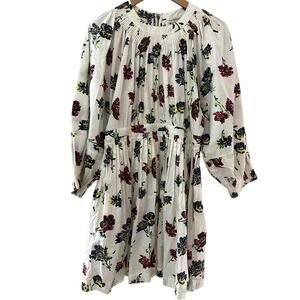 Ulla Johnson Joelle Poplin Floral Pleated High Neck Mini Dress Pockets Size 8