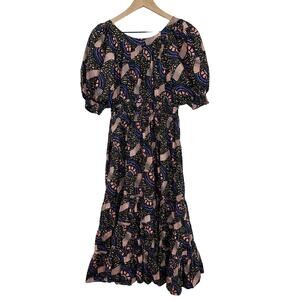 Ulla Johnson Juniper Dress Midi Floral Puff-Sleeve Cotton size 0 bohemian