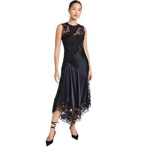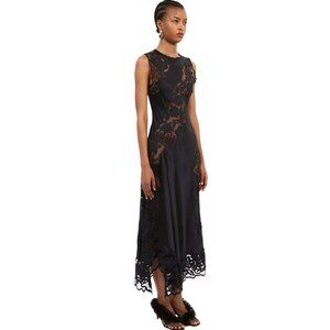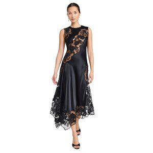 Composition: Lace-up Closure On The Back Of The Neck And Hidden Side Zip Crew Neck; Sleeveless Cut-out At The Back Tulle Panels Decorated With Floral Applications Midi Bias Cut Removable Slip Black Colour , 100% Silk