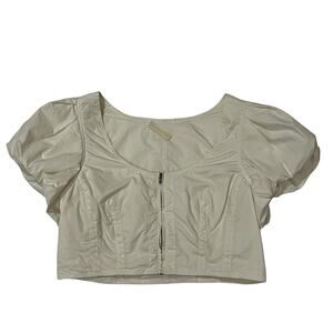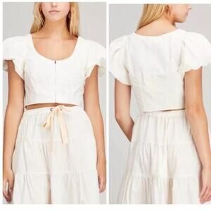 The Kalena Top is cut in our signature cotton poplin fabric. The bell-sleeved cropped blouse has directional seams along the bodice creating a close-to-the-body shape, a flattering scoop neck, and center front zipper. A staple transition piece for summer to fall on the island.