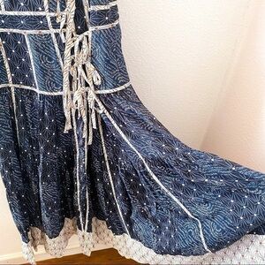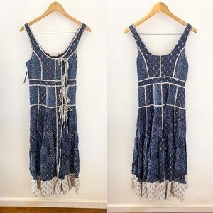 Ulla Johnson Keira Patchwork Silk Blend Midi Dress Blue White Size 0 NWT