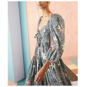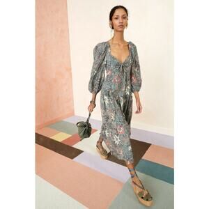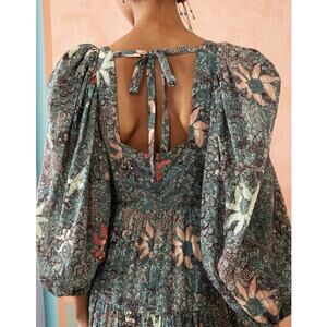 Ulla Johnson Kemala Midi Dress US 4 Malachite Floral Print Milkmaid Celebrity