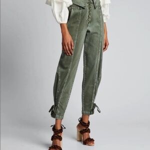 Originally, size 2 was quite oversized, and I I had them taken in at waist about an inch. A great fit for size 4 and now that I’m a size 6, they fit great as well, just slightly more snug. These are very cute and comfortable thanks to a bit of stretch in the fabric. No flaws, I’m selling because downsizing my closet.