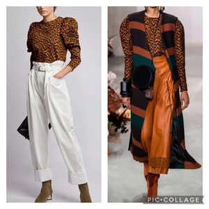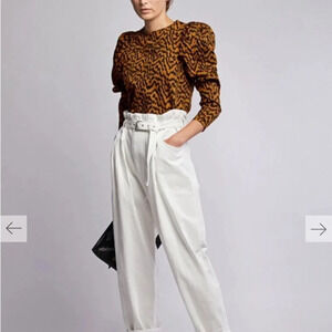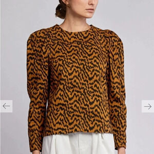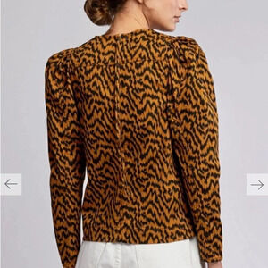 Ulla Johnson Kirby Tiger Print Denim Puff Sleeve Blouse 2