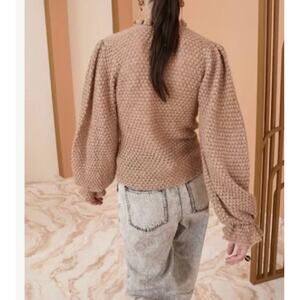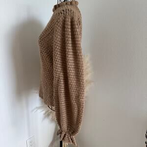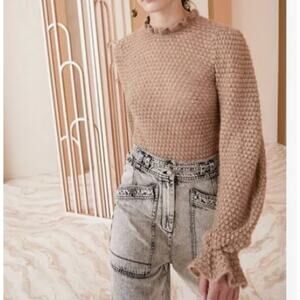 Ulla Johnson Laila Ruffle Textured Alpaca Merino Wool Knit Camel Sweater Sz P/XS