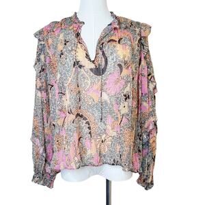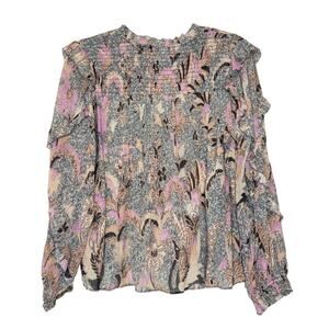 Ulla Johnson Lara Blouse Birds of Paradise Print Silk Cotton Blend Size 4