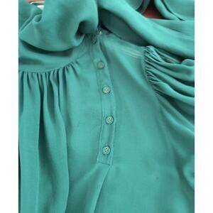 Ulla Johnson Lesli Silk Chiffon Side Bow Blouse Women's Size 6 Green Sheer Puff Sleeve Top