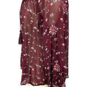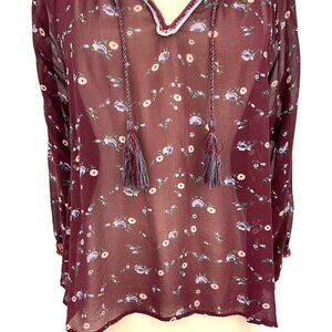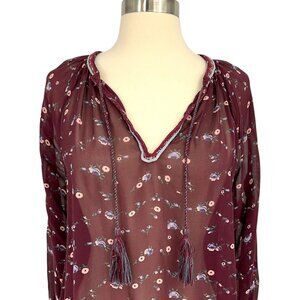 Ulla Johnson Lida Blouse Top Maroon Floral Silk Chiffon V-Neck Size 2 S Sheer