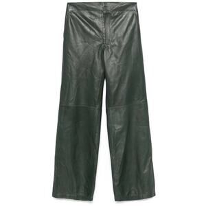 Ulla Johnson Lotti Leather Wide Leg Pants in Jasper Dark Green 0