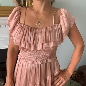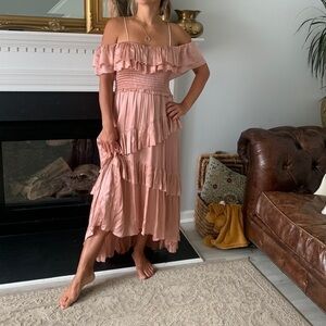 Ulla Johnson Louisa Silk Gown pink silk size 2 high low ruffles off the shoulder