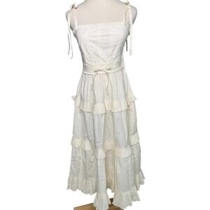 Ulla Johnson Lune Dress in Blanc ruffle tiered cotton poplin ribbon tie size 0