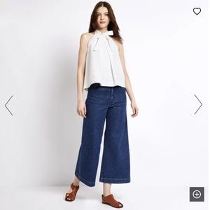Cut to flaunt the shoulders and collarbones so elegantly, this cotton-linen blend blouse is beautifully structured, subtly sexy... day-to-night perfection.
