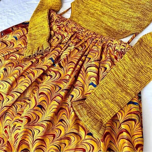 It features a unique combination of ribbed mouline knitwear and marbled taffeta, showcasing a delicate contrast