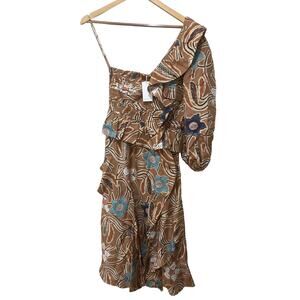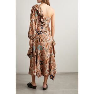 Ulla Johnson Mariam One-sleeve Ruffled Printed Silk Dress - Copper Size 2