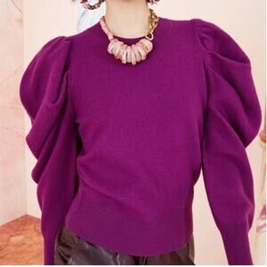 Ulla Johnson Merino Wool Sweater Size XS Marin Puffed Sleeve Hibiscus Purple