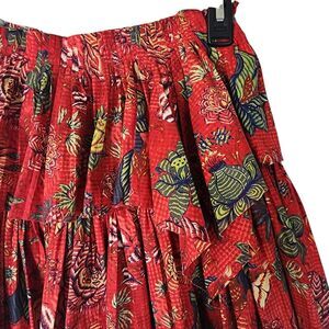 Ulla Johnson Mini Skirt Juno Tiered Pleated Poplin In Hibiscus Size 0 Red Cotton