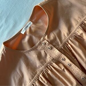 Beautiful "Minnie" blouse in a light warm apricot color that can also appear a bit earth toned (called "Pale Coral"). The color and poplin fabric make it perfect for year round wear - worn on its own or layered over. Stock pictures - including the "Dune" colorway are for illustration only.