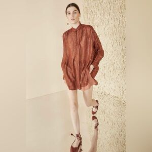 Ulla Johnson Momo Tunic in mohogany, size 4. In good pre-owned condition.