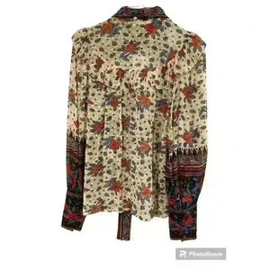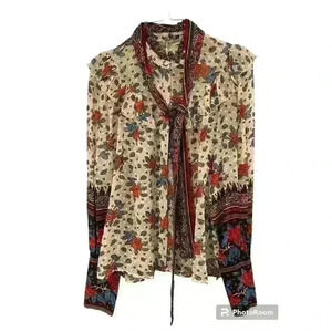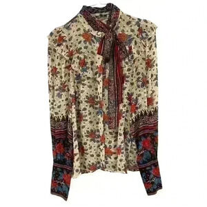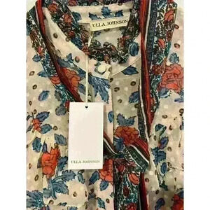Ulla Johnson NWT Antoine silk floral roses button cuff blouse bow tie size 4