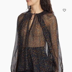 Crafted of crinkled silk chiffon, Ulla Johnson's stunning Pauline sheer blouse showcases a feather-like painterly print throughout the design.