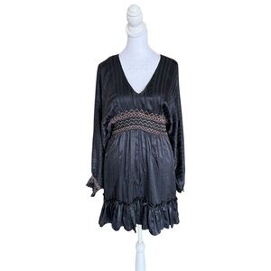 Ulla Johnson - NWT Silk Odette Midnight Smocked Long Sleeve Mini Dress Sz 2