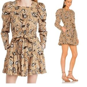 Ulla Johnson Nailah Printed Puff sleeve belted pocket dress in amber size 2