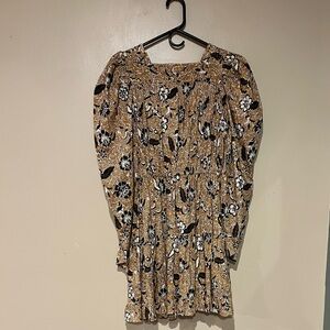 lavish pattern with dark and golden tones accents this pretty Ulla Johnson mini dress. A square neckline and puff shoulders add a classic finishing touch to the silhouette.