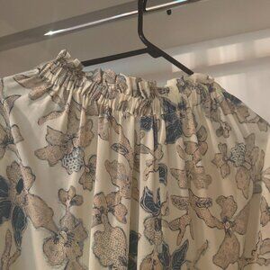 A beautiful printed silk piece. Love the floral pattern. This pair of wide leg silk pants is so chic.