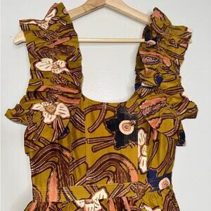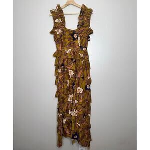 Ulla Johnson Nia Midi Dress in Copper Floral Ruffle Tiered Skirt Size 0/XS