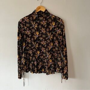 Ulla Johnson Nina Black Floral Rayon Stretch Peplum Waist Top Size M NWOT