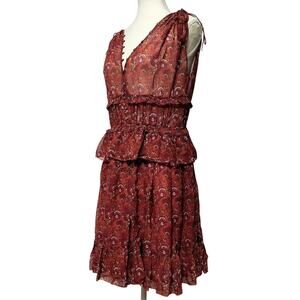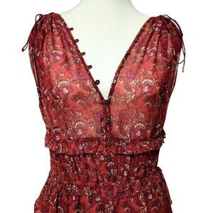 Ulla Johnson Noelle Dress Size 4 Ruby Red 100% Silk Sheer Floral Georgette Mini