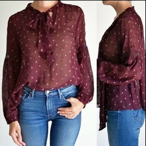 Ulla Johnson Floral Blouse Top in Burgundy.