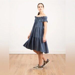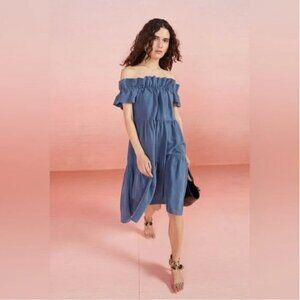 Ulla Johnson Olivia Off Shoulder Linen Chambray Midi Dress