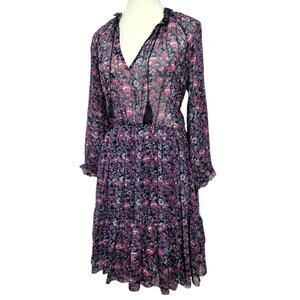 Ulla Johnson Ollie Dress Size 4 Navy Pink Sleeves Floral Peasant Mini 100% Silk