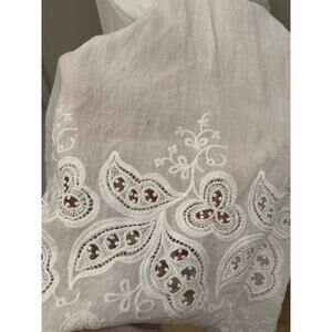 A few things to note, interior slip layer was cut out.. so the dress is sheer on the bottom now. Wear as a swimsuit cover or can wear your own slip. A tiny orange spot on the bottom of the dress, I didn’t see it prior to washing, so I have not tried any stain treatments on it. Tassels are getting a little frayed.