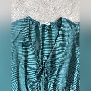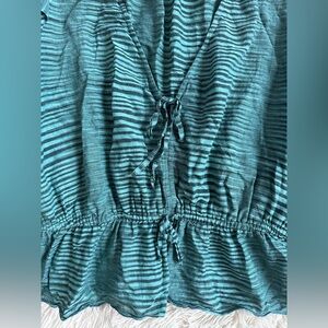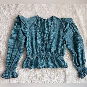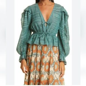 Ulla Johnson Ophelia Cotton Voile Peplum Blouse Teal Stripe Size 10