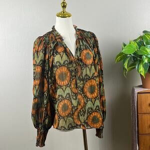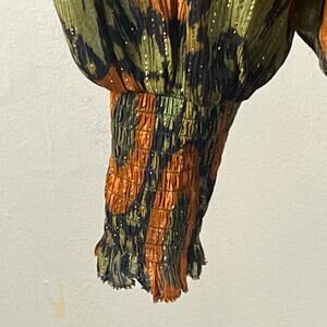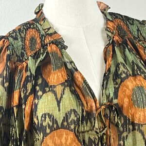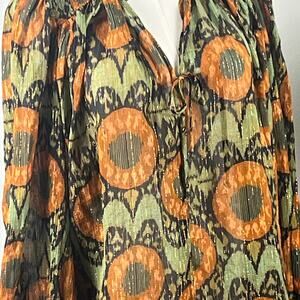 Ulla Johnson Orange and Green Shimmer V Neck Long Sleeve Loose Fit Top Size 8.