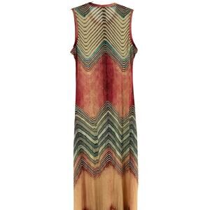 Ulla Johnson 'Orla' Orange Lyocell Dress Size XL: a vibrant, wavy stripe pattern, sleeveless, crew neck, pull-on closure, measurements: 19 inch bust x 54 inch length.