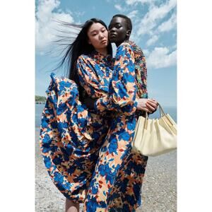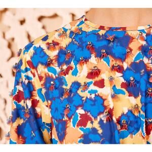 Ulla Johnson Palma Blue Orange Floral Long Sleeve Dress Cotton Midi US 4