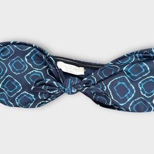 A knotted front detail draws attention to the front of this strapless bikini top. Slips on over head