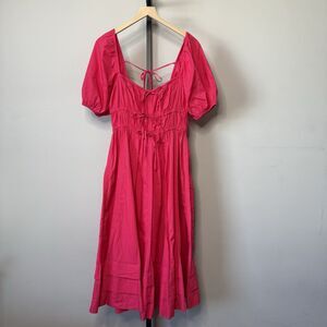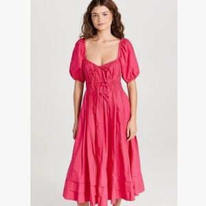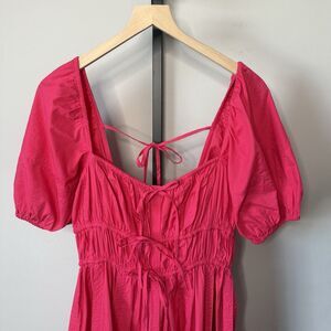 Ulla Johnson Palma Vibrant Barbie Pink Peasant Cotton Puff Sleeve Midi Dress 6