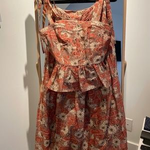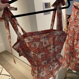 Absolutely beautiful Petunia pattern Ulla Johnson skirt and top set. Never been worn, perfect condition. Top is size 2, skirt is size 0. Tie shoulder, peplum top and midi skirt. Original price $1,050 for top and skirt.