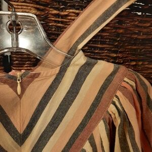Ulla Johnson Puff Sleeve Dress Metallic Striped Knee Length Tent Tiered Pockets 4