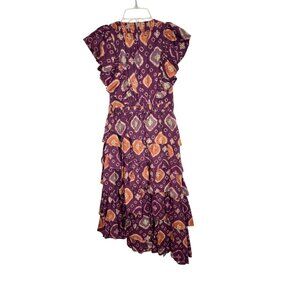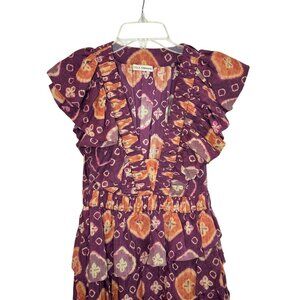 Ulla Johnson Purple and Orange Ruffled Midi Dress