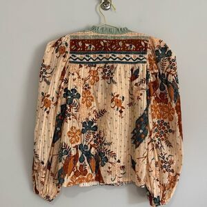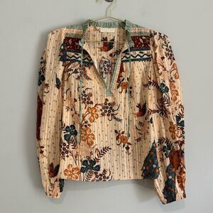 Rendered in a lightweight cotton blend and detailed with an intricate tapestry print, there is nothing we don't love about the Egret Rana Blouse. Boho-chic style is the name of the game for this top, which features a ruffle collared split neckline with ties and balloon sleeves to create some drama. Pair with flowy shorts in a contrasting print for a big and bold look made for tropical escapes, or with light denim and sandals for an effortless everyday look.