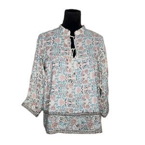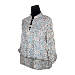 Ulla Johnson Rhia Blouse Floral Cotton Peasant Boho Tie Neck Top Size 6