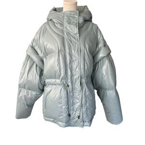 Ulla Johnson Rhodes Hooded Down Puffer Coat Jacket Agave Blue Size Large