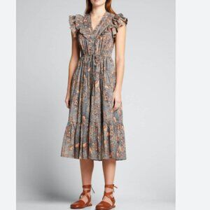 Ulla Johnson Romina Floral Midi Dress in Aegean Size 2
